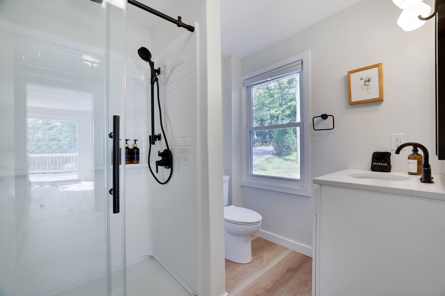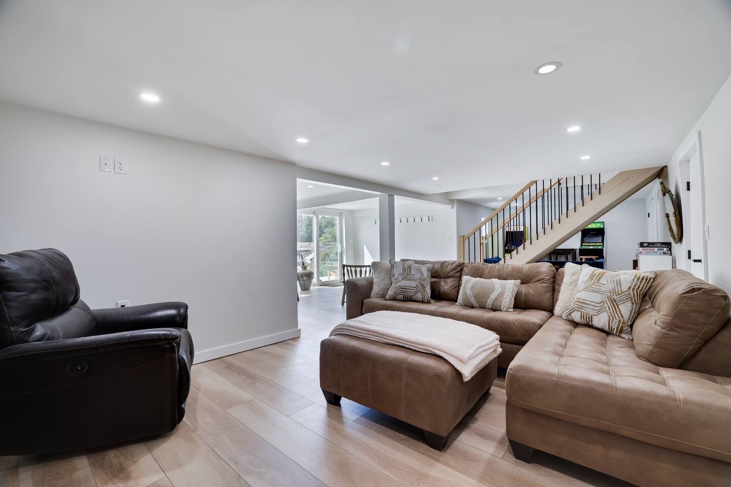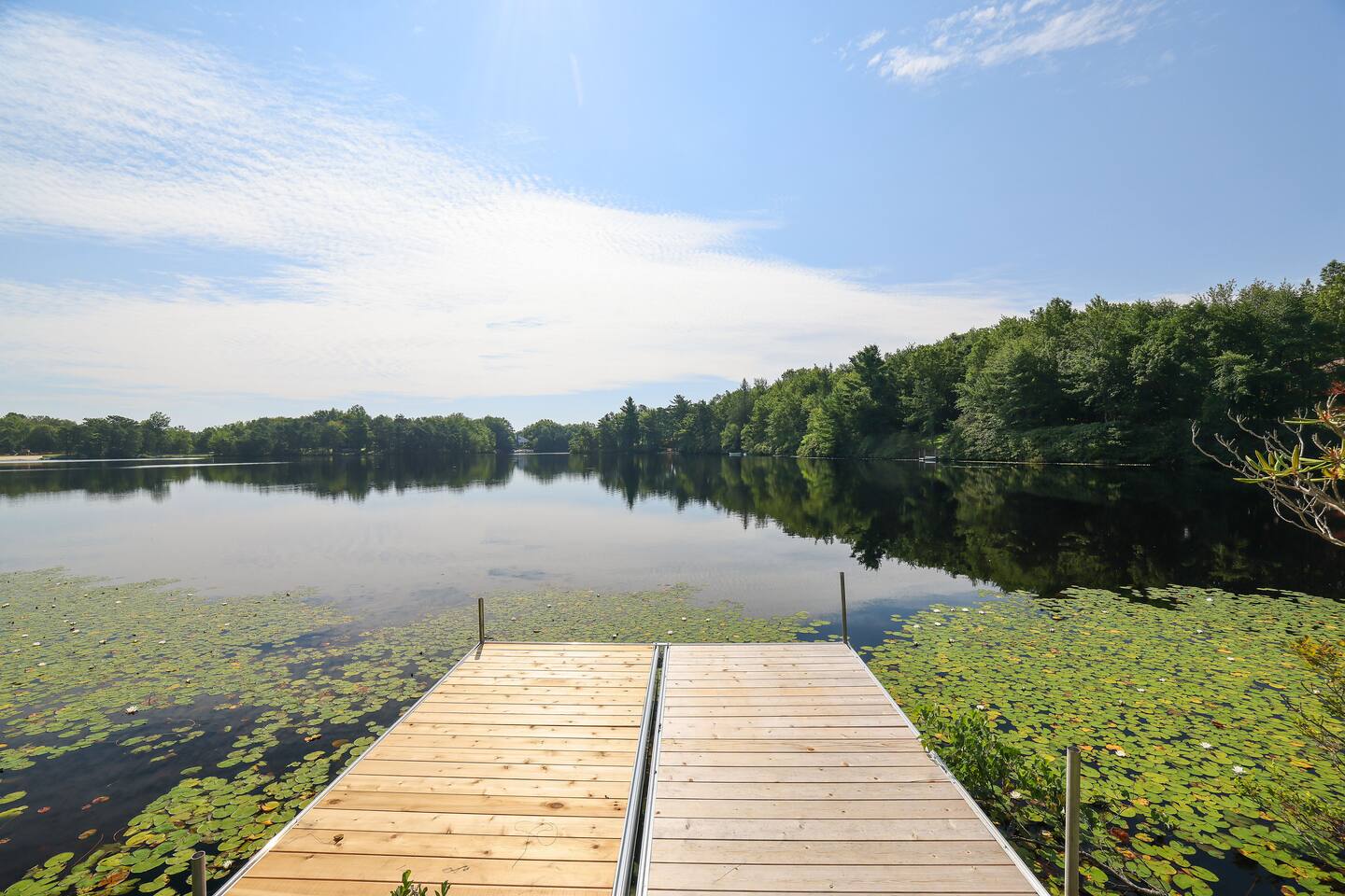 Relax with all the essentials: high-speed Wi-Fi, smart TVs, plush linens, and thoughtful extras like complimentary coffee and premium toiletries. Upstairs Highlights: • Fully equipped kitchen with complimentary coffee • Spa-inspired full bathroom with rainfall shower and complimentary shampoo, conditioner, and body wash • Open-concept living room with vaulted ceilings, smart TV, and a cozy sunroom/dining area featuring lake views, a lounge nook, and a vintage record player • Three inviting bedrooms with plush bedding, smart TVs, and full-length mirrors: - Primary suite with queen bed, private full bath, and dedicated workspace with lake views - Second queen bedroom with lake views - Third bedroom with two twin beds - perfect for kids! Downstairs Fun: • Game zone with Pac-Man, golf arcade, and board games • Movie lounge with oversized couch and full-size pull-out bed • Second spa-style bathroom with complimentary toiletries • Washer and dryer for added convenience Outdoor Oasis: • Upper deck with propane grill, lake-view dining area, and lounge chairs • Lower patio with private hot tub, four Adirondack chairs, and a 4-person patio table • Private dock with two kayaks and a 2-person canoe to explore the lake • Driveway parking for up to 4 vehicles Nearby Adventures: • Kalahari Resort – Indoor waterpark, spa, and arcade • Pocono Raceway – NASCAR thrills • Camelback & Blue Mountain – Skiing, tubing, zip-lining, and summer fun • Shawnee, Elk, Spring Mountain – More slopes within easy reach • Pocono Outdoor Adventure Tours – UTV off-road excitement • Nature escapes – Hauser Nature Center, Long Pond Conservation Easement, and Barrens & Preserve for hiking and reflection